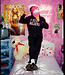 Oversized photo print on back is printed over the waist ribbing