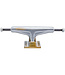 Start charging through those grinds with the Tensor Aluminum Truck Stencil Mirror Raw/Gold. Guaranteed for life, Tensor stands behind their product to produce the best quality truck on the market. A newly designed truck made for your desire. Manufactured with a lower kingpin to allow more clearance through those grinds and roll-ins. Designed with an interlocking bushing technique to evenly distribute the response time through the bushing with reinforced steel within key areas resulting in an overall stronger truck with 30% less weight compared to all other truck companies creating the lightest and strongest truck on the market.